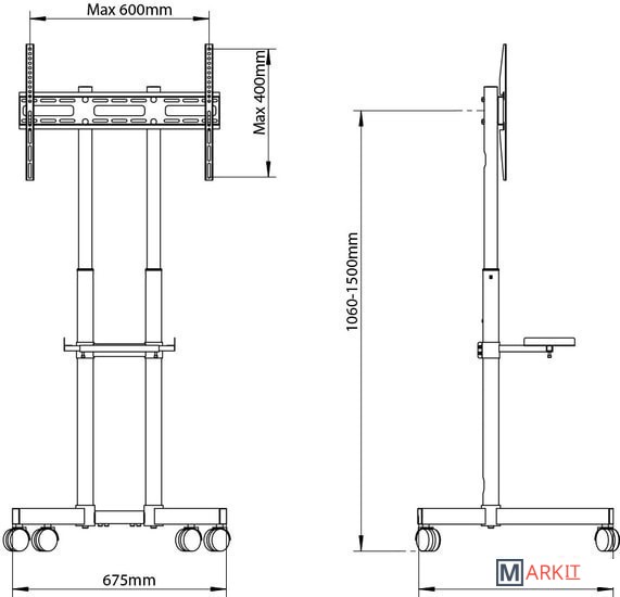Она идеально подойдет как для офиса, чтобы проводить презентации, так и для дома. Непревзойдённый внешний вид, благодаря внешнему алюминиевому покрытию. Стойка снабжена маневренными колесиками, для удобного перемещения, которые имеют фиксатор.