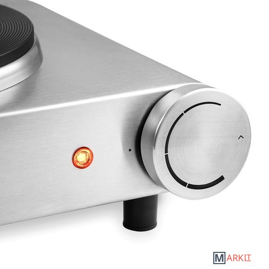 Максимальная нагрузка: 10 кг.Длина шнура питания: 1 м.Общая мощность: 2200-2500 Вт - левая конфорка: 1350-1500 Вт; - правая конфорка: 850-1000 Вт.